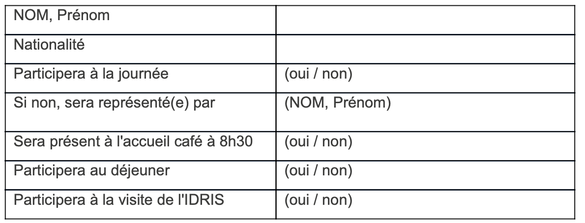 As the number of places is limited, responses are expected by e-mail sent to nicolas.belot@genci.fr with the information below duly completed before September 26, 2022: