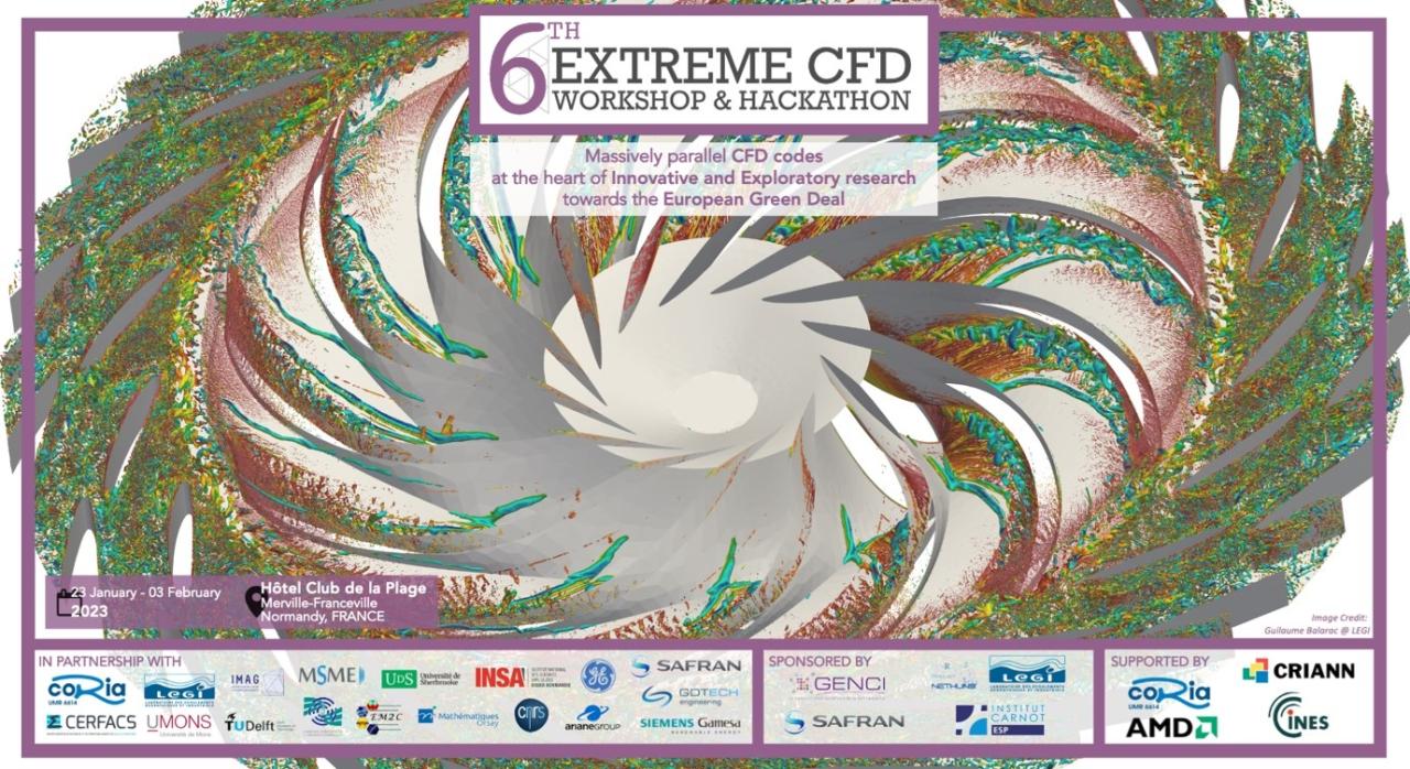 Cet évènement est soutenu par le GENCI, Safran et la chaire industrielle NETHUNS du LEGI et GE Hydro France, l’institut Carnot ESP et le méso-centre Normand CRIANN, qui mettra à disposition de la communauté CFD, à la fois des heures de calcul sur le supercalculateur Myria et fournira du support système et applicatif à la communauté CFD durant cette semaine. Pour le hackathon, le CINES et AMD apporteront leur connaissance et expertise en mettant à disposition leurs experts en portage et optimisation d’applications scientifiques.