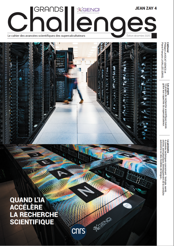 VivaTech en 2023. Ce succès est le fruit d’une procédure d’achat spécifique, « le dialogue compétitif », prélude à un partenariat exemplaire entre GENCI, l’IDRIS et Eviden avec le support de NVIDIA et DDN (pour le stockage). Les Grands Challenges Jean Zay 4, réalisés en 2024 et 2025, ont inauguré la mise à disposition de cette technologie d’exception. Ces projets repoussent les limites de la simulation numérique dans de nombreux domaines. Les 10 projets présentés dans ce cahier ont mobilisé un total de plus de 3,8 millions d’heures de calcul GPU H100. Ils sont issus de domaines scientifiques et industriels variés allant des modèles souverains de langues, sécurité des modèles, IA agentique, visionappliquée au véhicule autonome mais aussi IA pour la science dans les matériaux, la santé, la biologie, l’astrophysique et enfin le développement de méthodes d’émulation quantique pour le développement de nouveaux médicaments via de la chimie quantique.